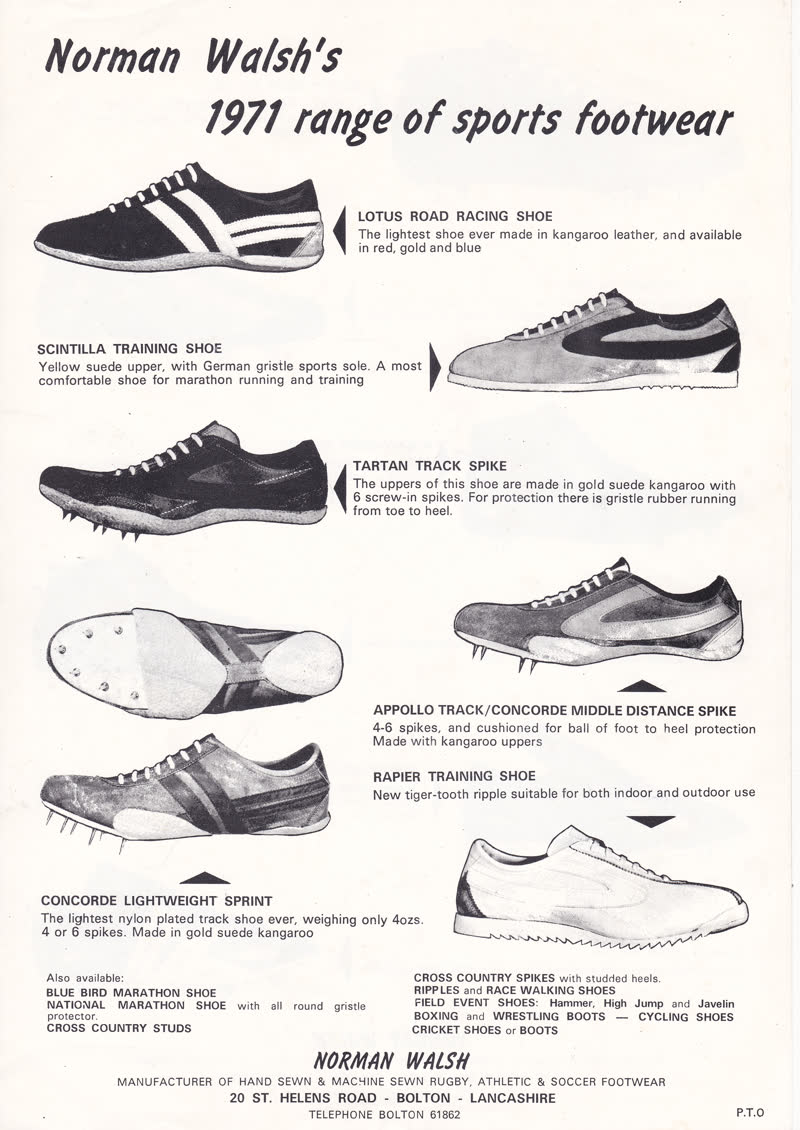 Developed through Normans earlier years, the Appollo aptly named after the Mythological Roman/Greek God and during the time of the Apollo Space Program, was a middle distance spiked track shoe.