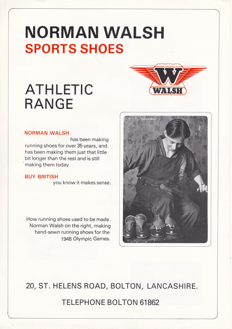 In 1948, Norman was selected by Joe and Jeff Foster to make the ‘Fosters De Luxe’, the track spikes used by the Great British Summer Olympic teams and many other athletes competing at the games. Notably this included, Alistair McCorquodale, Maureen Gardner and Arthur Wint.
